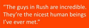 I was always a Rush fan. They used to play Cornwall, my home town, and when I was in high school I would go see them. So, it’s kind of a dream come true for me to be performing with them now.