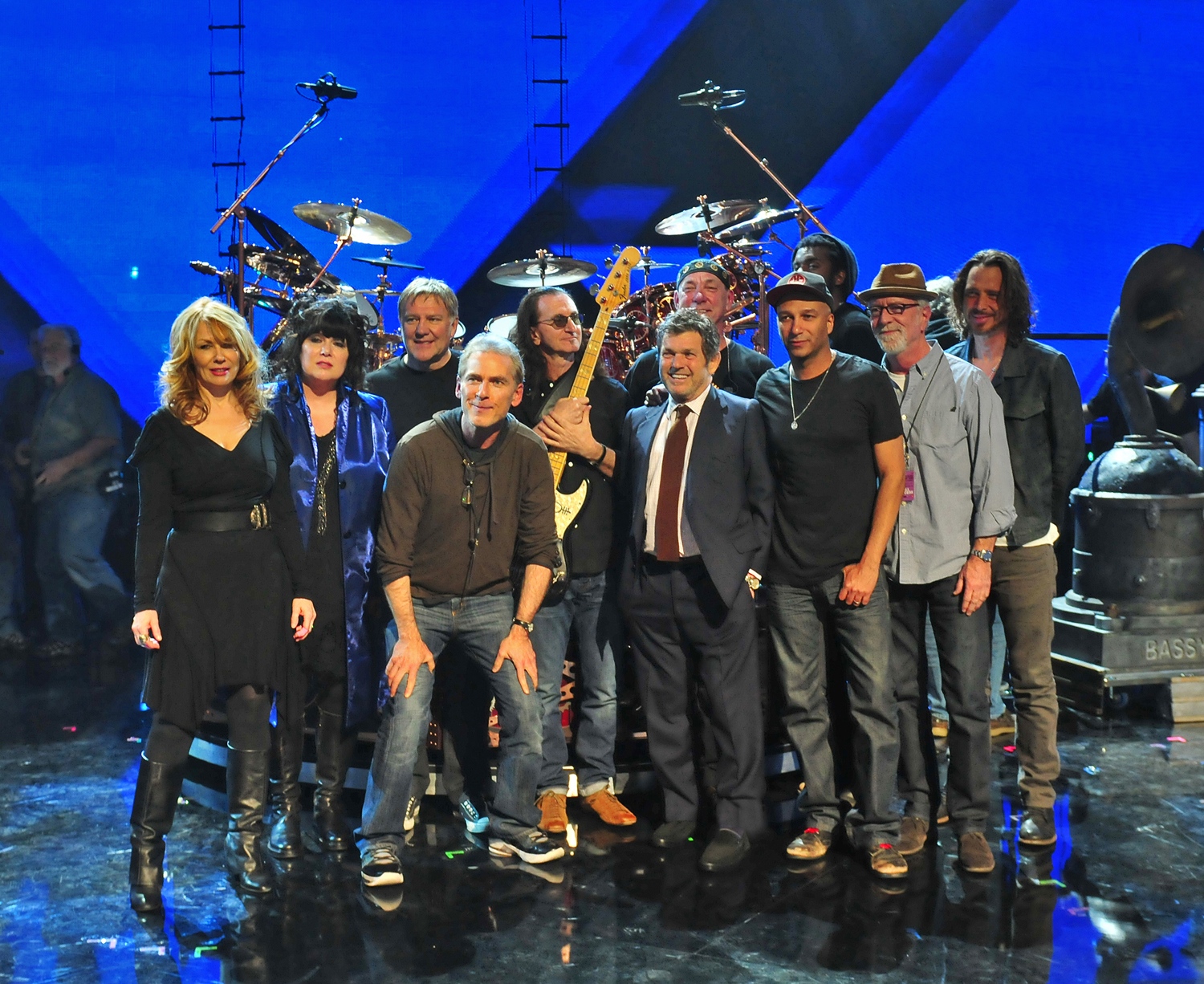 “So I pulled it back a notch, and we played it again. It felt fine to me either way, but the boge (our slang for ‘square’) said it felt heavier and better for the soloists to breathe. I could see that. Then he suggested even a notch slower yet, and I said, ‘Okay.’ There was no time to rehearse that, but I figured out a proper ‘feel’ for a slightly slower tempo in my brain (’cause it ain’t just math, eh?). I also asked the geniuses to pass around to all the other players that I would be playing it slower. (If nothing else, I wanted them to know it was on purpose!) Well . . . Geddy [said that] “that boge was Jann Wenner!” Ha ha!—Perfect! The world’s most powerful Rush-hater.” (Read about Jann Wenner’s surprise at the ceremony.)